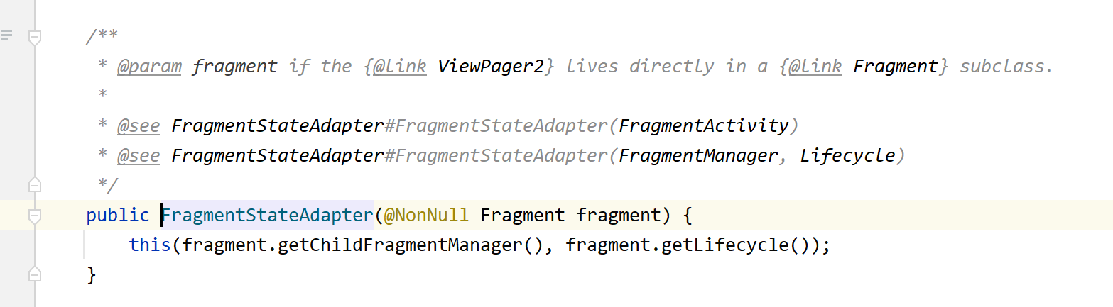 3. adapter property 변수를 생성하는 시점에 초기화를 같이 하지 않은 이유는 Fragment가 Activity에 attach 되지 않았기 때문입니다. FragmentStateAdapter의 내부 코드를 따라가보면 Fragment의 childFragmentManager에 접근하고 있는데, Fragment가 Activity에 attach 되지 않은 경우에 FragmentManager가 없어 runtime Exception이 발생합니다.