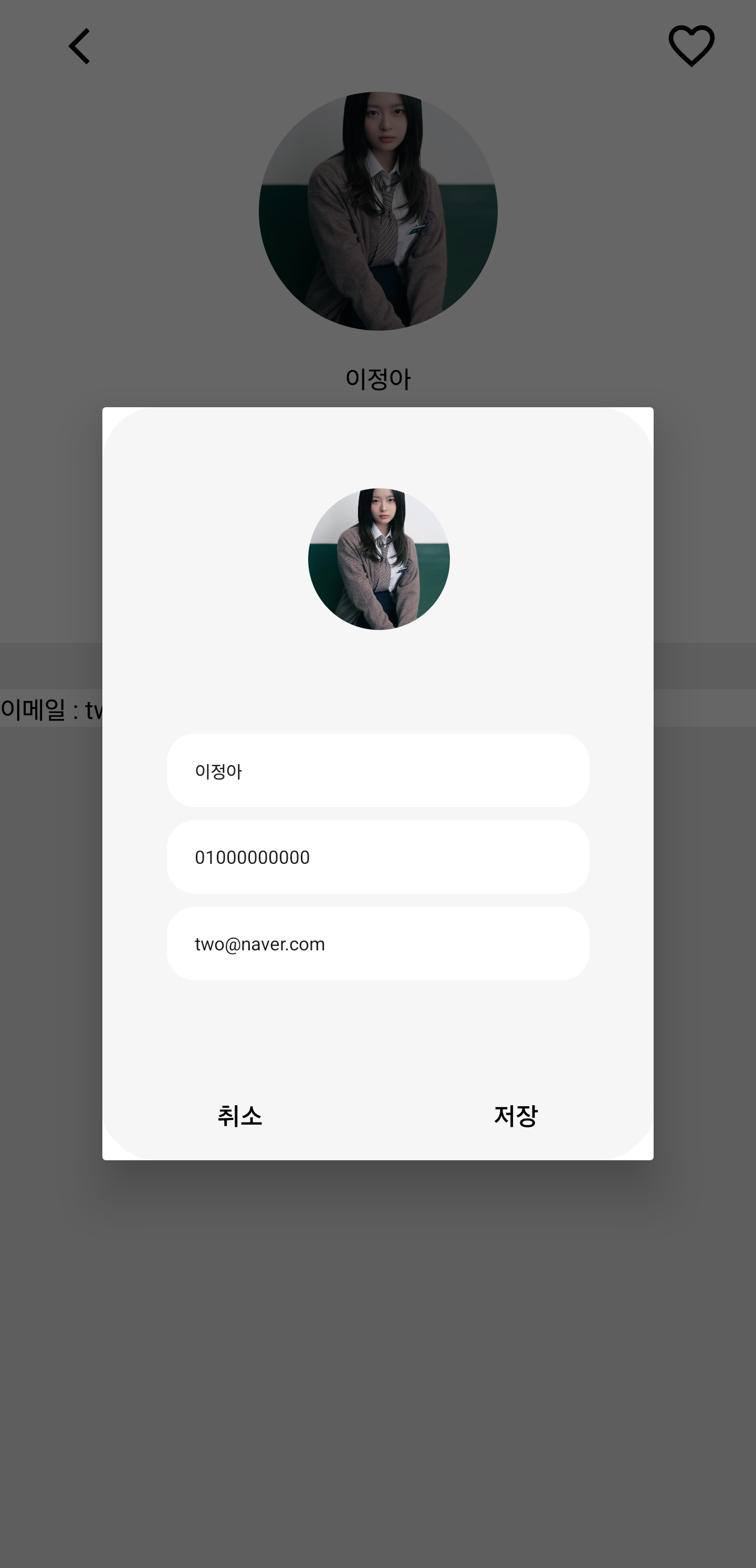 DialogFragment를 이용해 아래와 같이 사용자 정보를 수정할 수 있도록 구현했습니다.