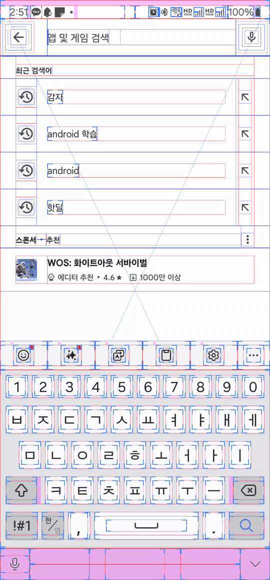 플레이 스토어에서는 IME_ACTION_SEARCH가 발생하면 뒤로가기 버튼에 focus를 준다고 추론해볼 수 있습니다.