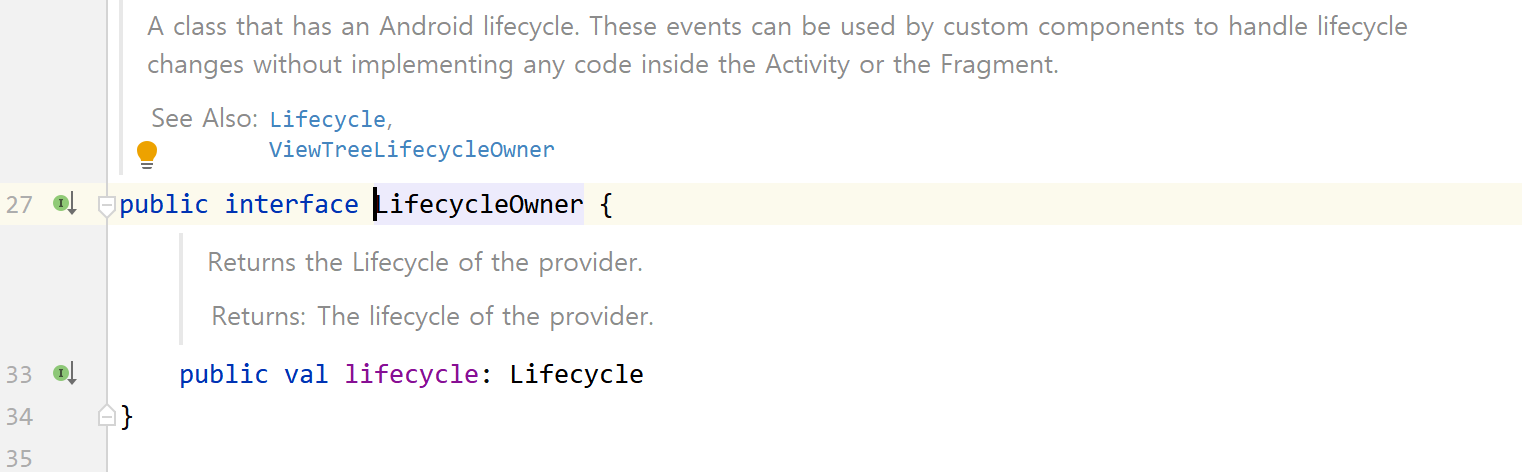 LifecycleOwner는 Android Lifecycle을 property로 가지는 인터페이스입니다.