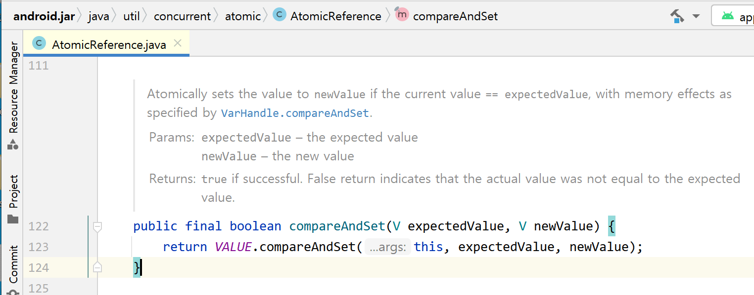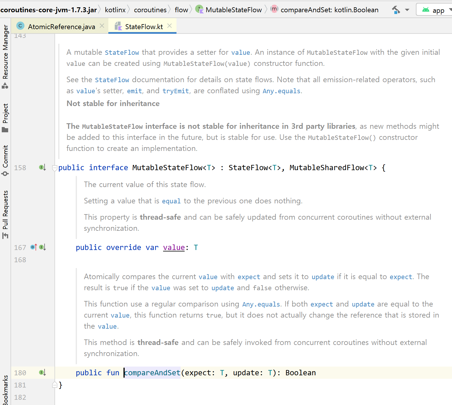 Flow의 update 함수에서 사용하는 compareAndSet과 동일한 함수는 아니지만 이름이 같은 compareAndSet 함수를 만들어서 사용합니다.