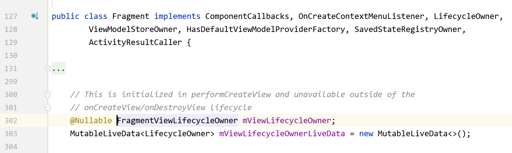 Fragment class는 LifecycleOwner 인터페이스를 구현합니다.