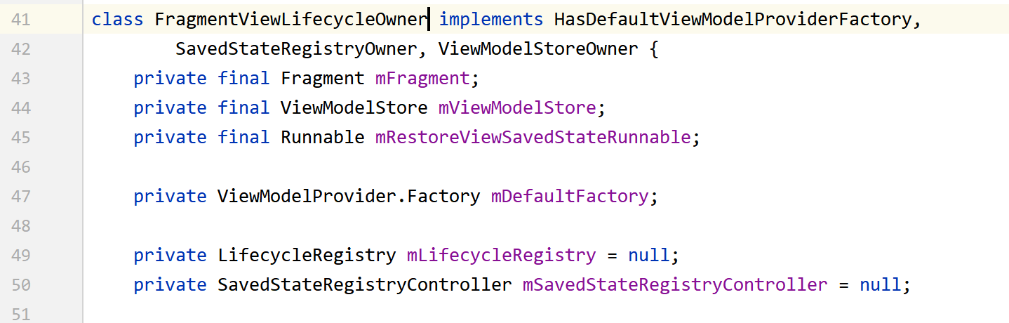 Fragment View의 LifecycleOwner는 FragmentViewLifecycleOwner로, FragmentViewLifecycleOwner는 LifecycleOwner 인터페이스를 구현한 SavedStateRegistryOwner 인터페이스를 구현하고 있습니다.