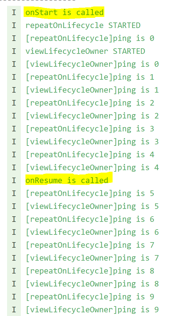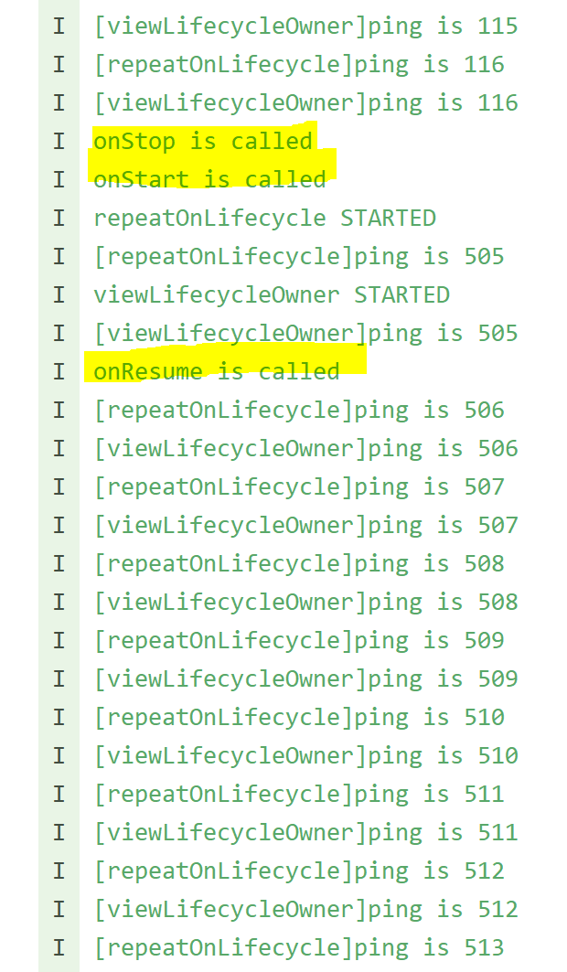 Log.i("TEST", "[repeatOnLifecycle]ping is $it")