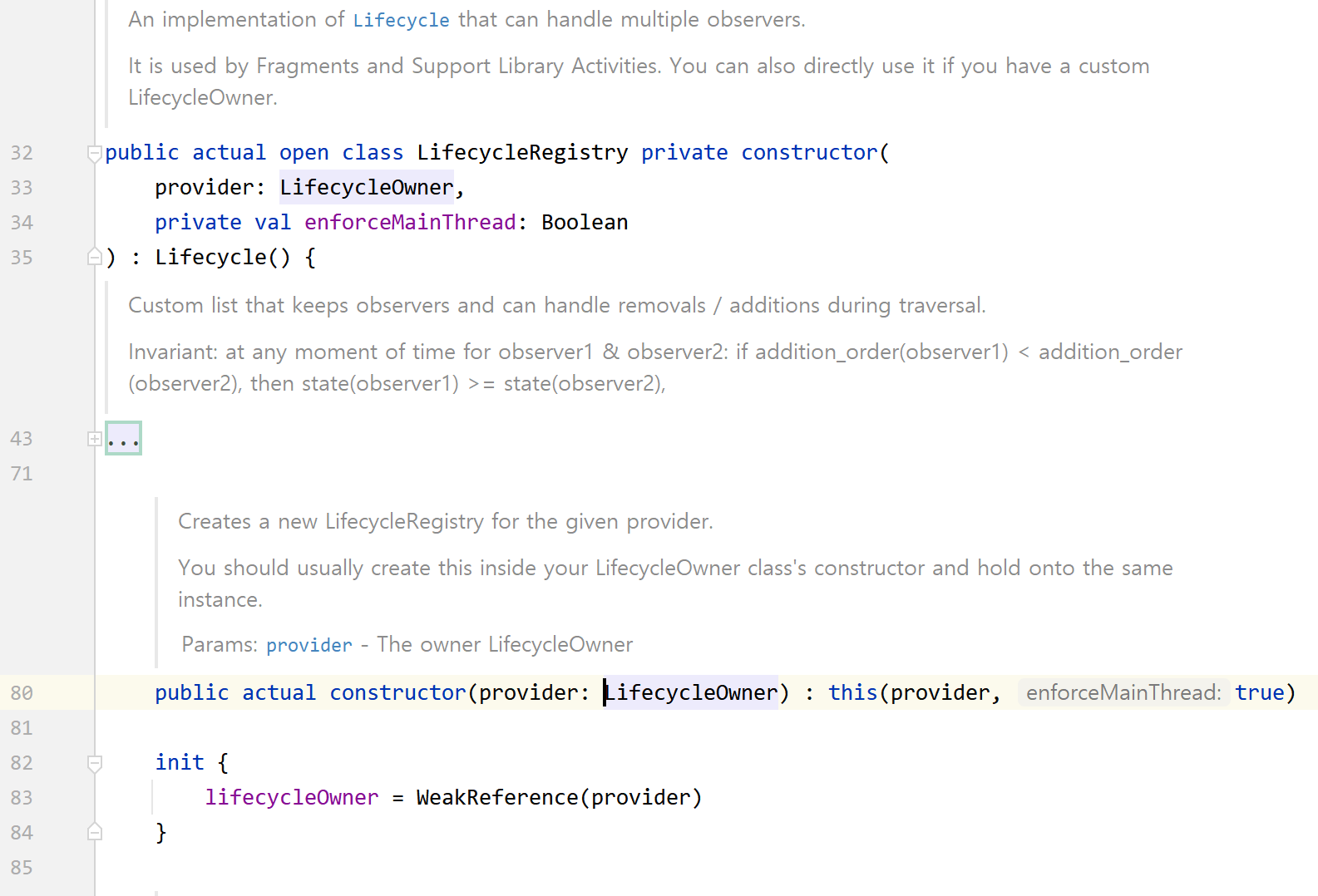 Fragment에서 Lifecycle 변수는 LifecycleRegistry 클래스로 구현하고 있습니다.