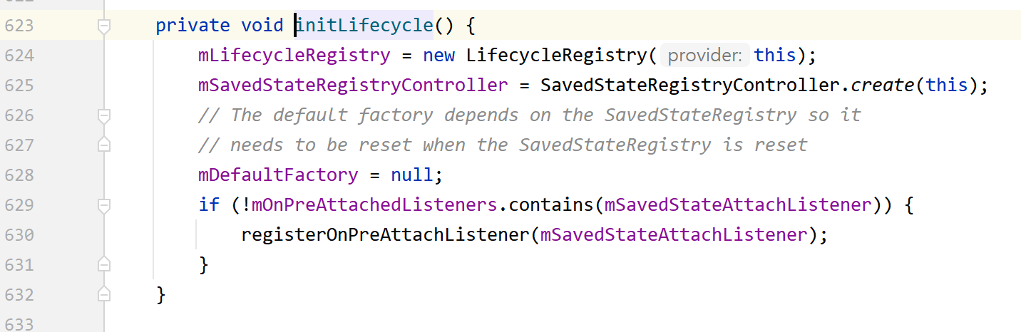 LifecycleRegistry 클래스 변수는 Fragment 생성자 호출 시점에 생성됩니다.