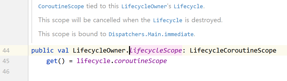 viewLifecycleOwner의 lifecycleScope은 아래와 같이 구현되어 있습니다.