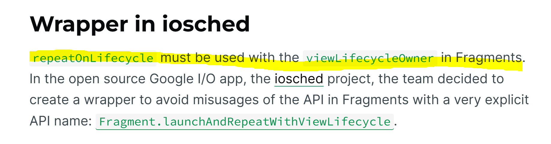즉, STARTED 이후 상태에서는 repeatOnLifecycle 앞에 viewLifecycle을 붙이지 않아도 됨을 알 수 있습니다.