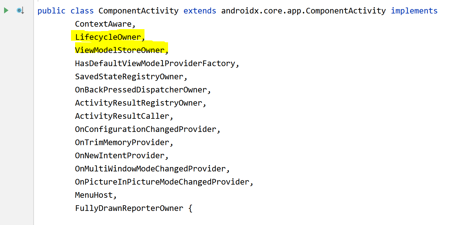 LifecycleOwner, ViewModelStoreOwner를 구현하는 최초의 클래스