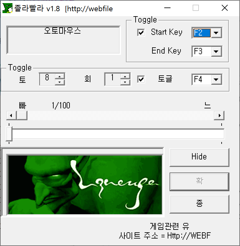 제 손을 믿을 수 없기에 졸라빨라 라는 마우스 클릭 소프트웨어를 이용해 더 빠르게 클릭해봤습니다.