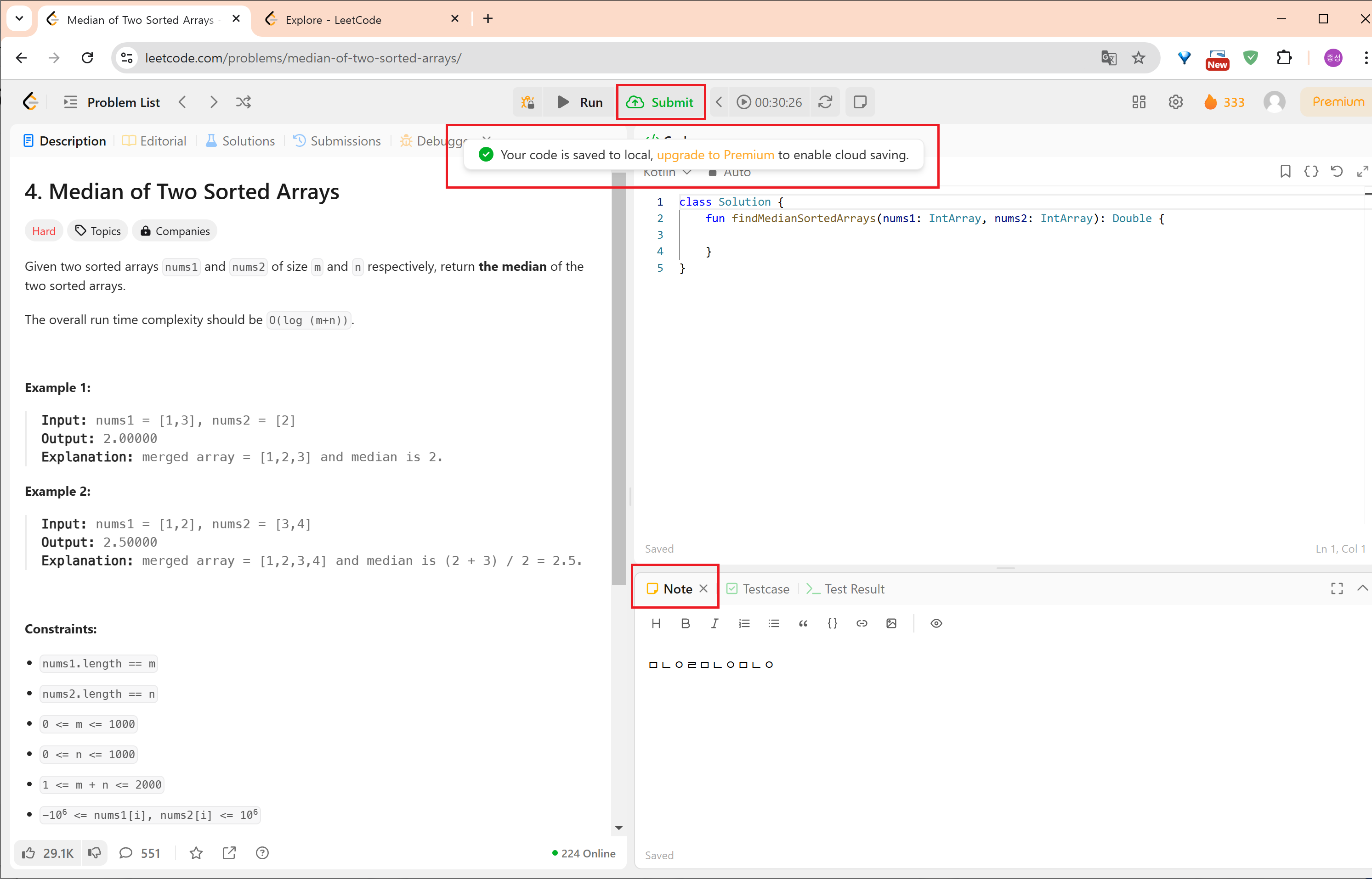 작성한 코드와 노트가 서버에 저장되어, 이동 중에 스마트폰으로 간단하게 작성한 후 PC에서 이어서 풀기 좋다. 그런데 모바일 리트코드에서 코드 영역을 누르면 지나치게 확대되어 코드를 작성하기는 사실상 불가능하다.