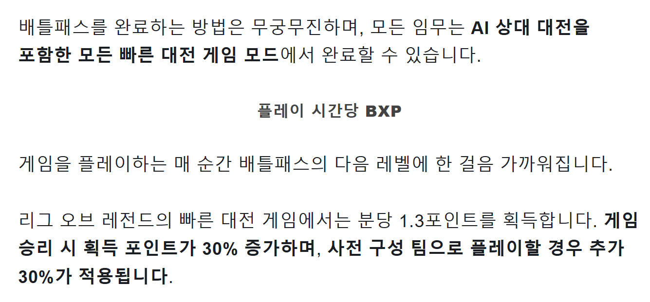 단순 플레이 경험치 효율이 감소한 만큼 주간 목표, 액트 목표와 같은 이벤트 경험치를 AI 상대 대전을 활용해 최단 시간에 효율적으로 클리어하는 방식을 추천한다.