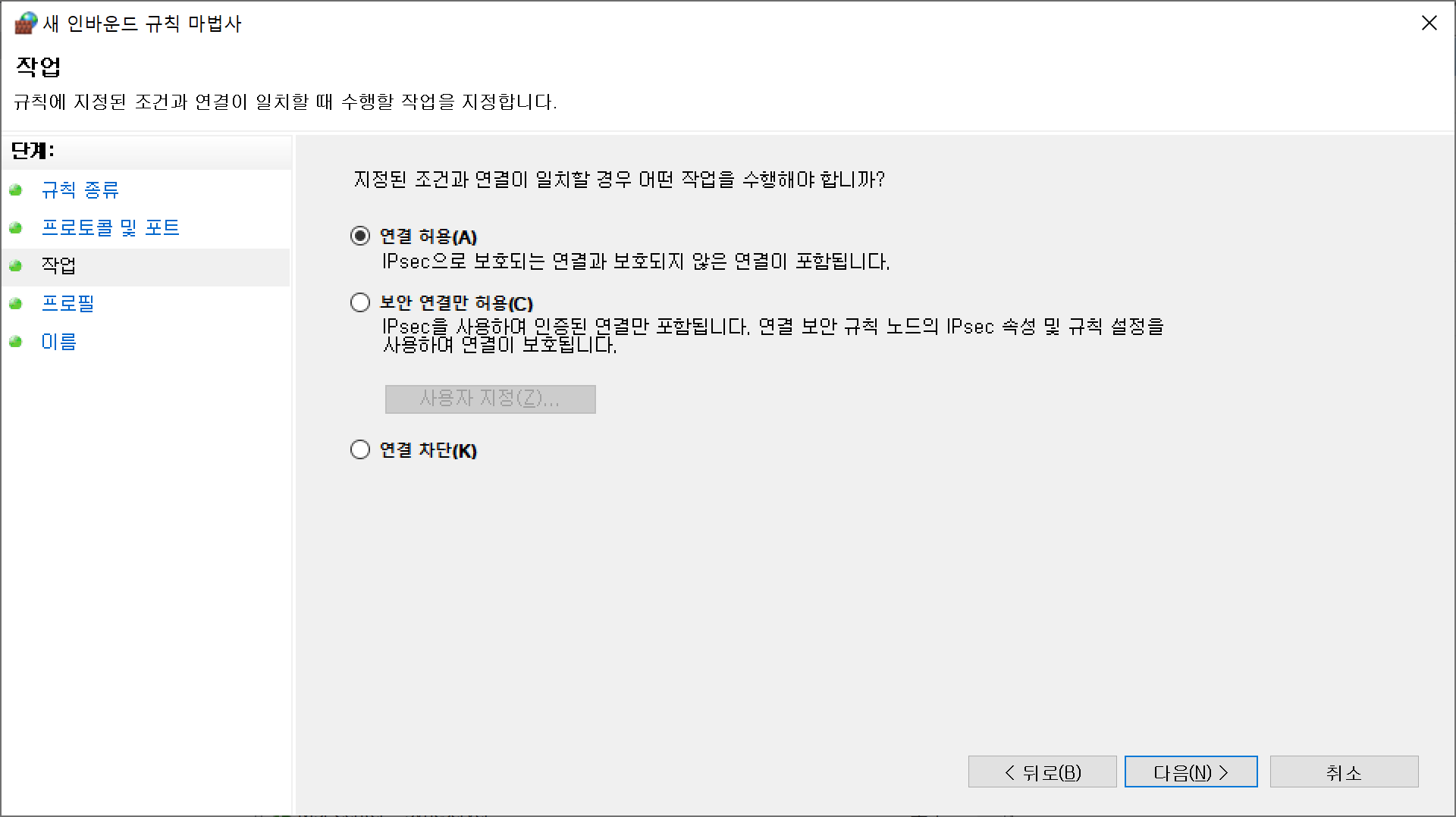 연결 허용을 선택합니다.