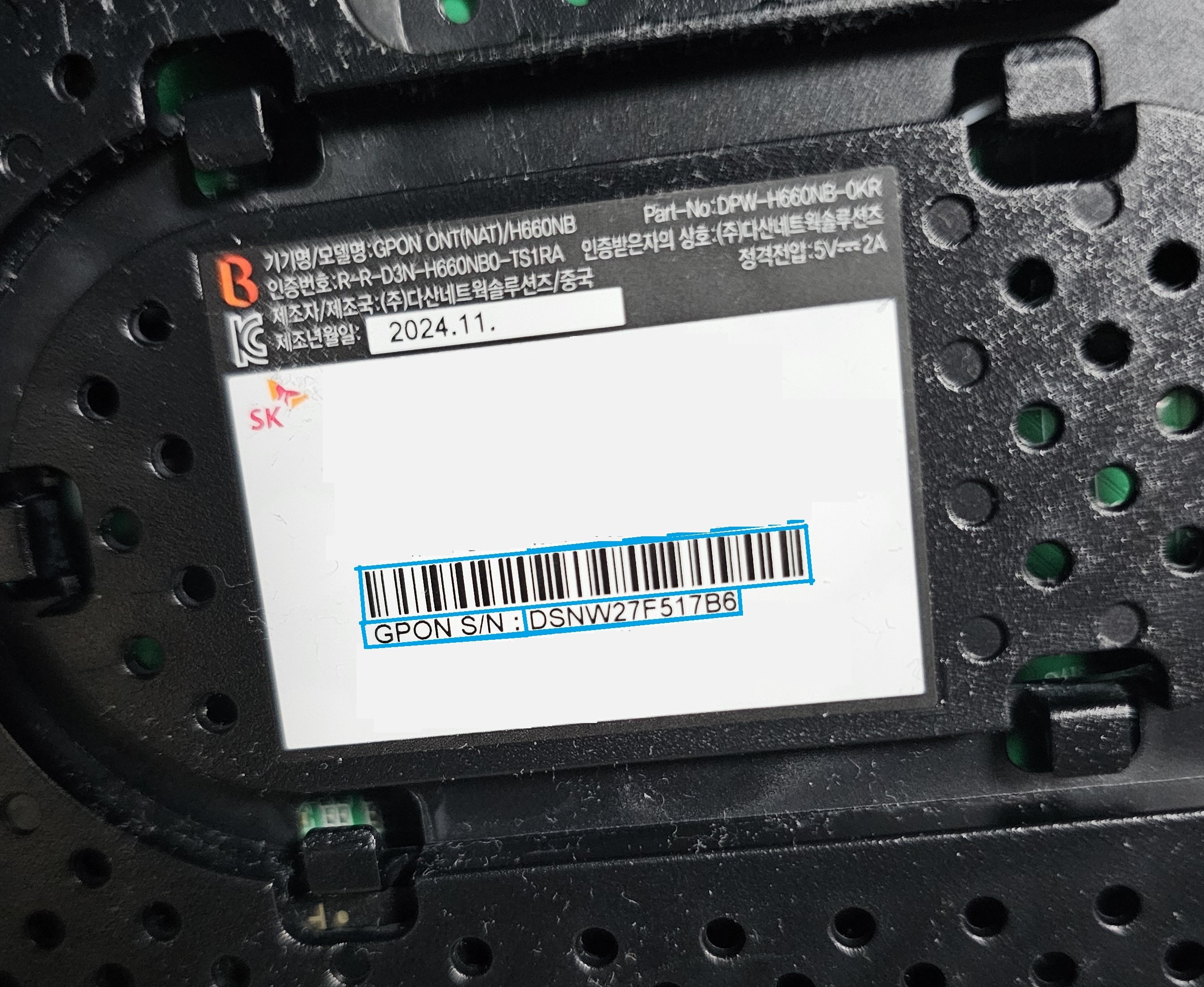 초기 비밀번호는 {6자리}_admin 형태이며, 6자리는 모뎀 뒤쪽의 GPON S/N에서 뒤 6자리를 입력하면 됩니다.