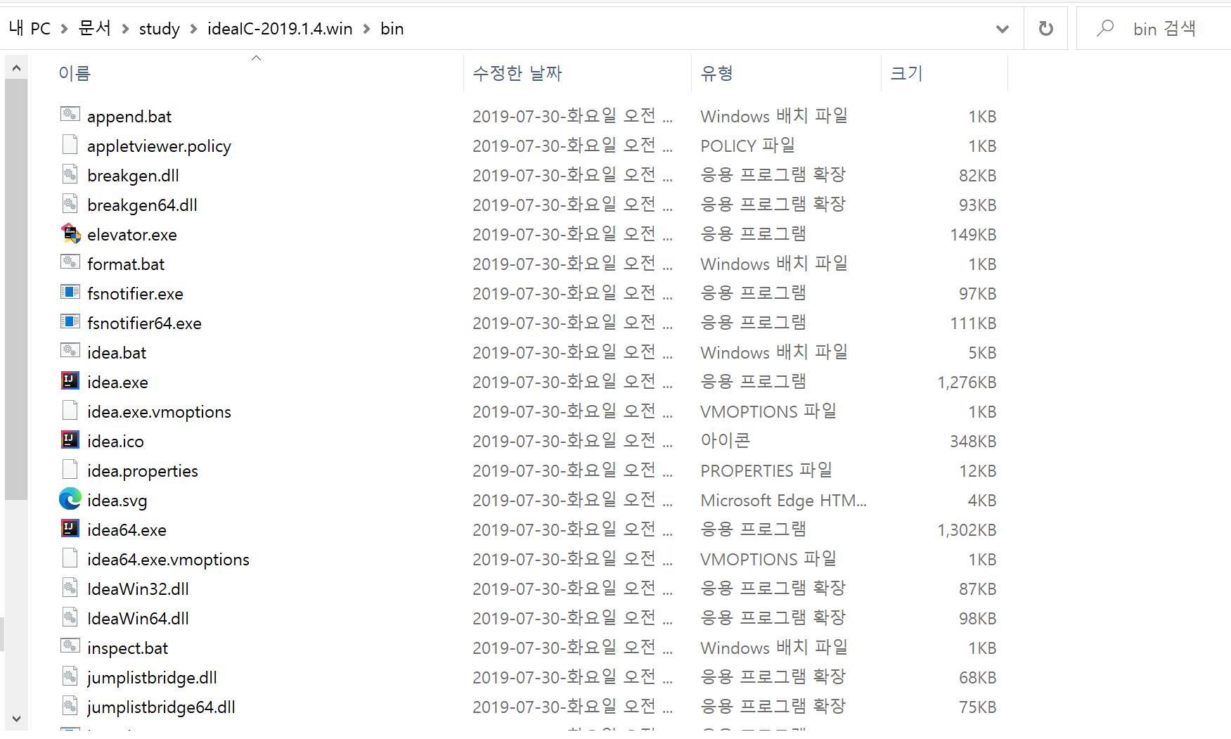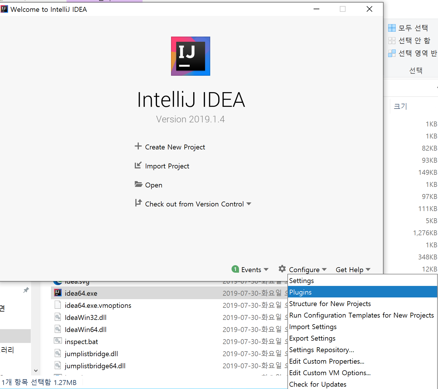 ideaIC-2019.1.4.win - bin - idea64.exe를 실행합니다.