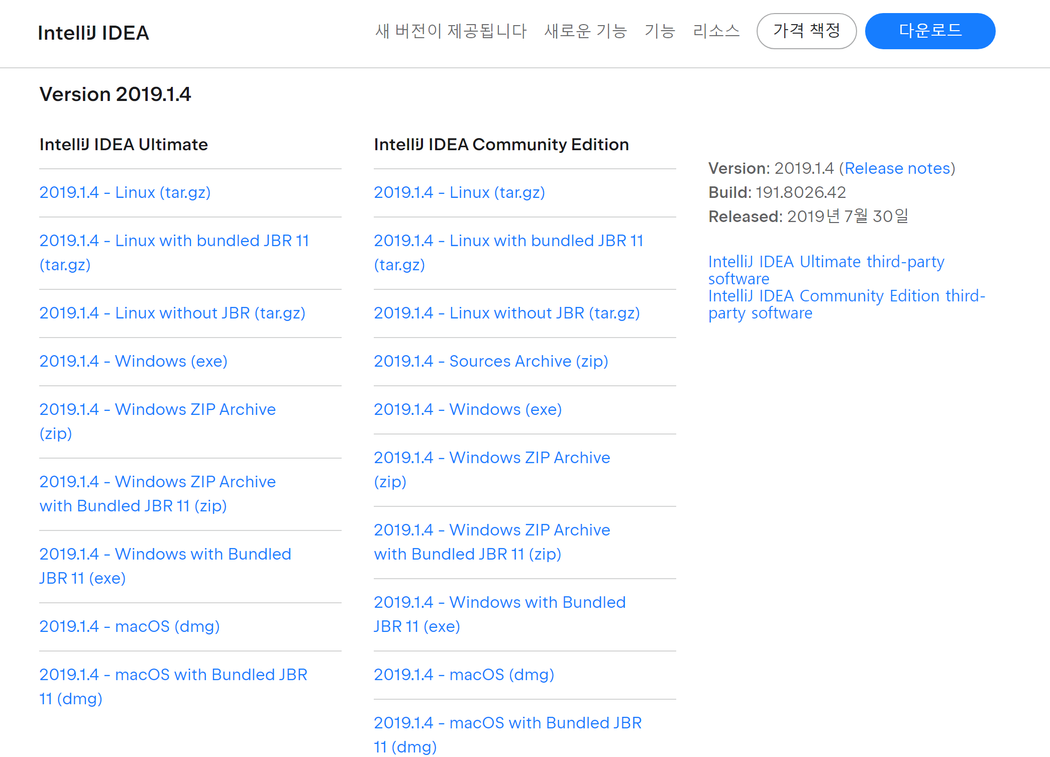 https://www.jetbrains.com/ko-kr/idea/download/other.html