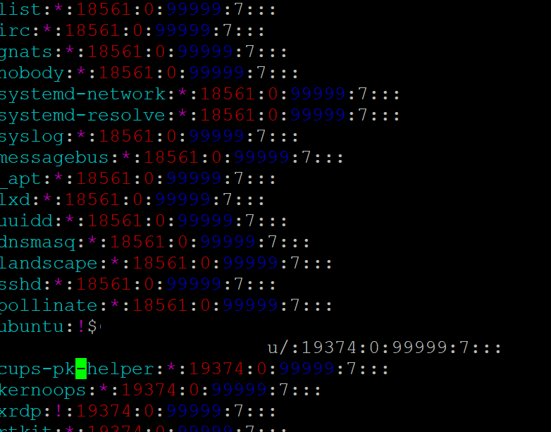 아래에서 ubuntu:!$라고 되어 있는데, !가 lock이 걸려있음을 의미한다.