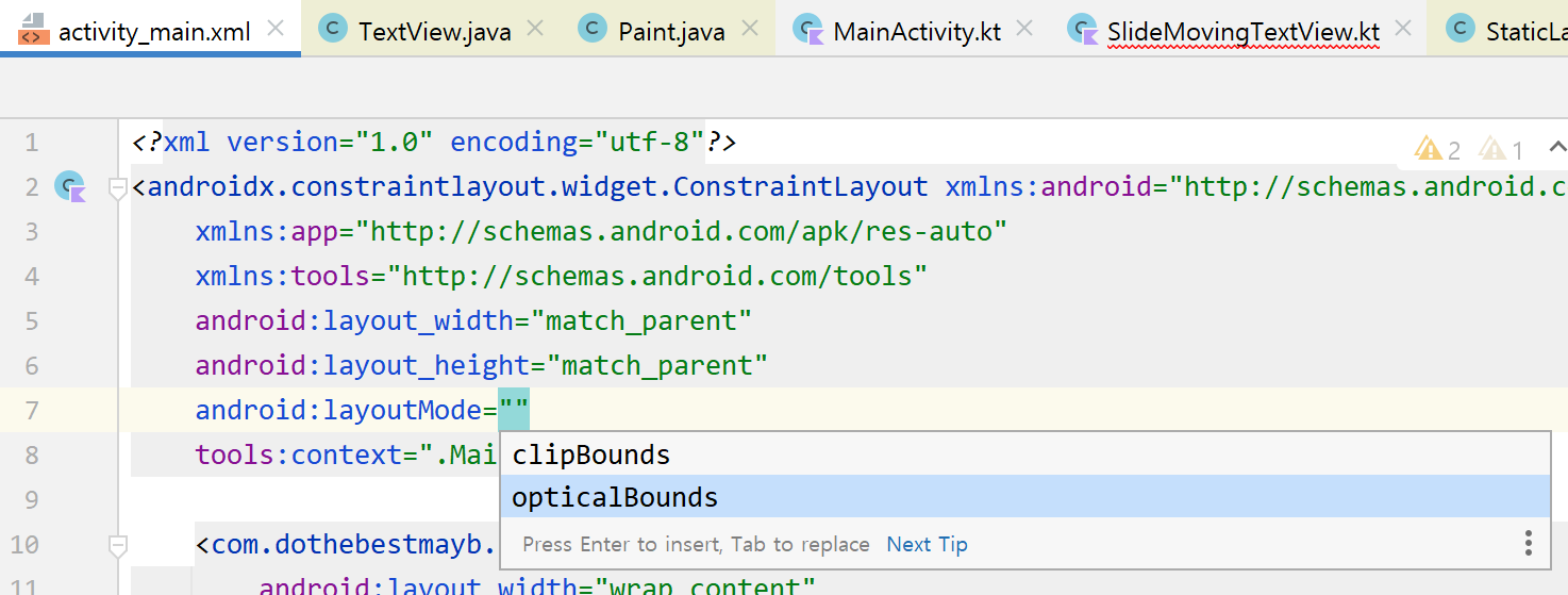 xml에서 layoutMode를 이용해 이 값을 설정할 수 있으며, 기본 값은 clip mode이다.