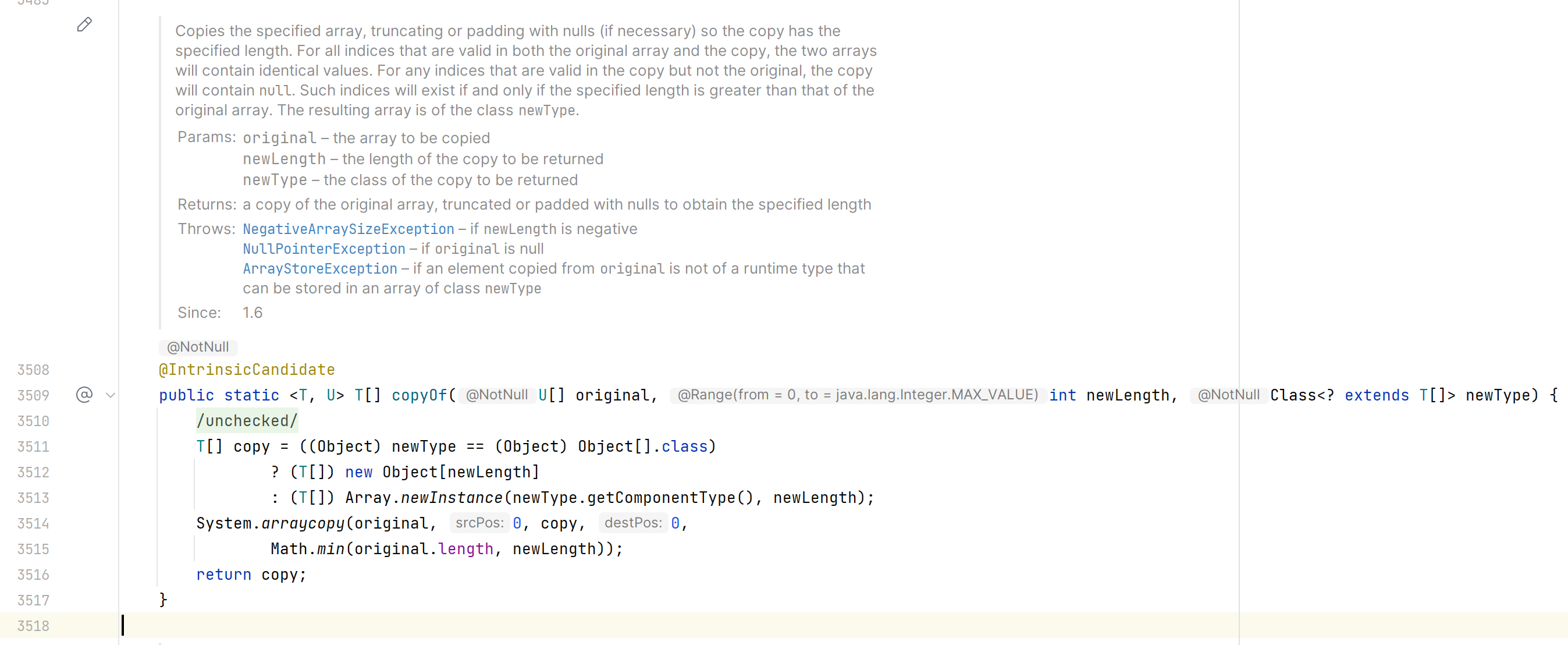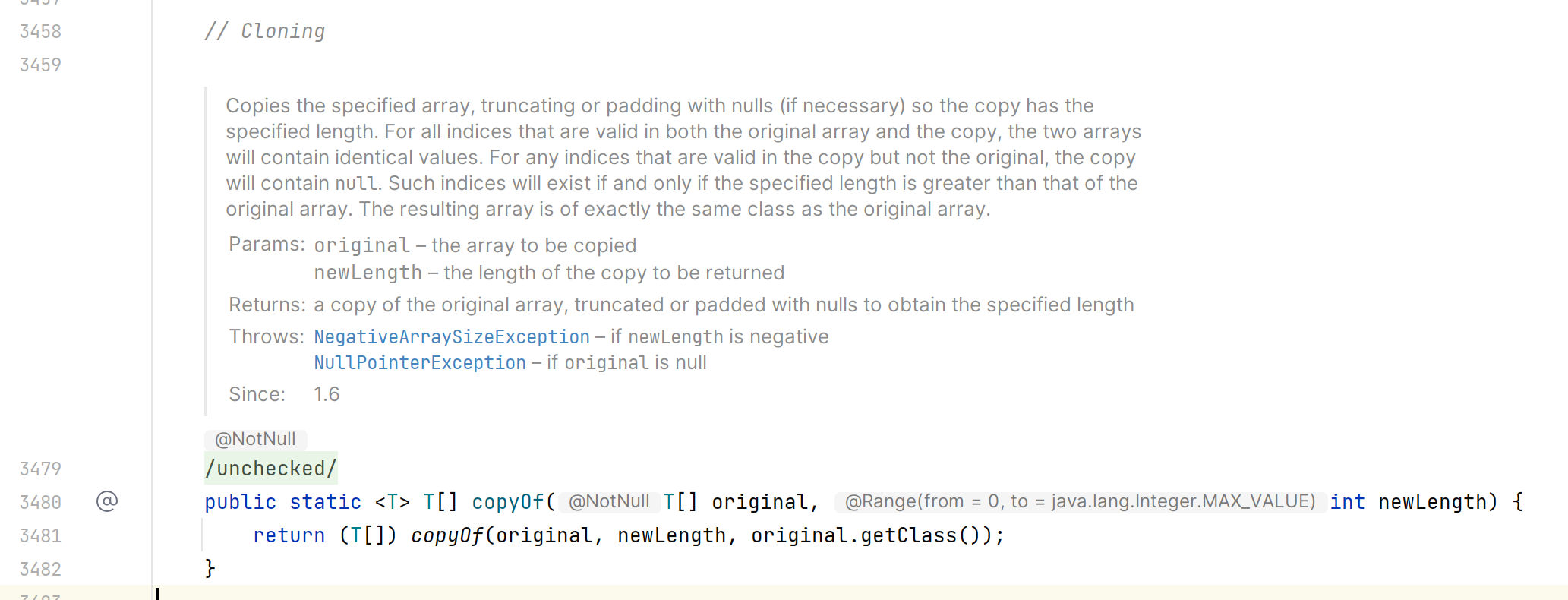 Arrays.copyOf 함수는 다음과 같다.
