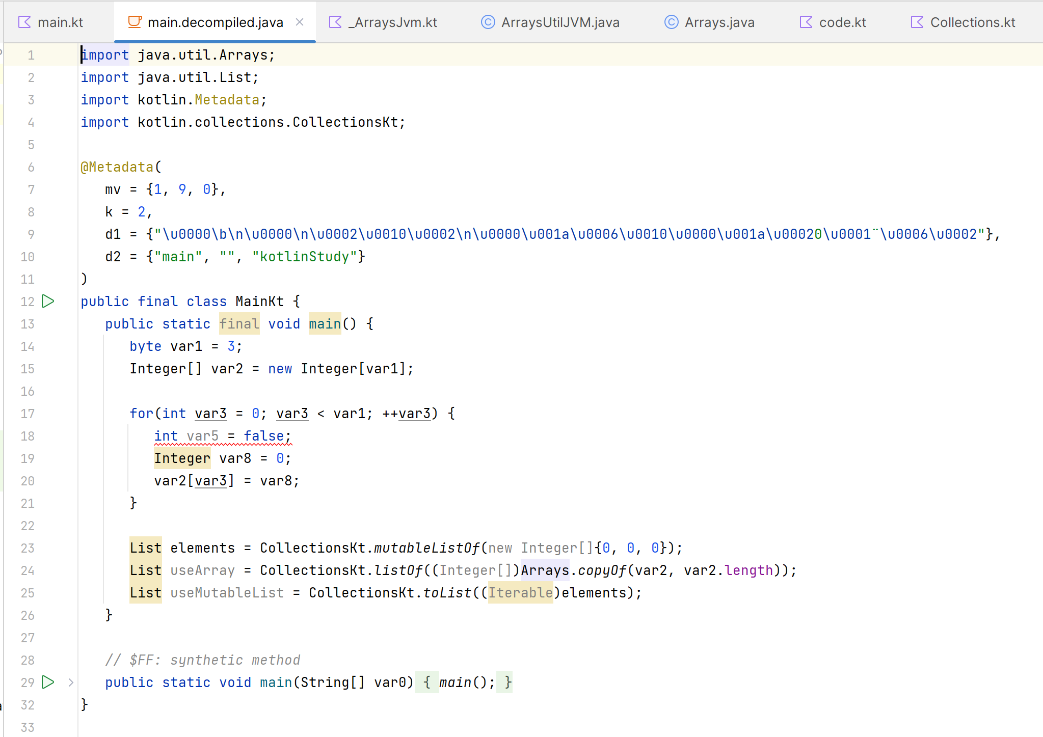 디컴파일된 자바 코드를 확인해보면 다음과 같다.