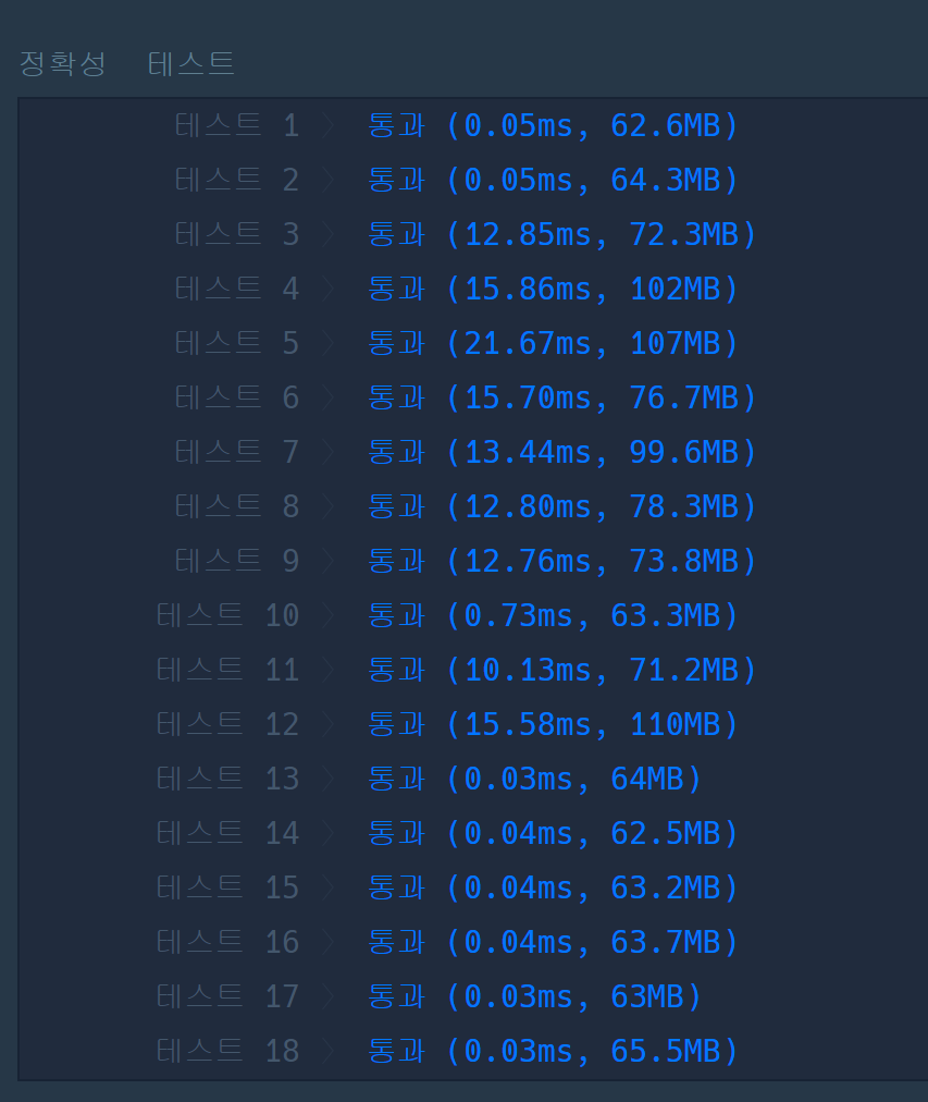 모든 케이스를 커버하기 위해 stack의 크기를 1,000,001로 설정할 경우, ingredient의 크기가 작을 때는 오히려 처리 속도가 더 오래 걸리는 것을 확인할 수 있다.